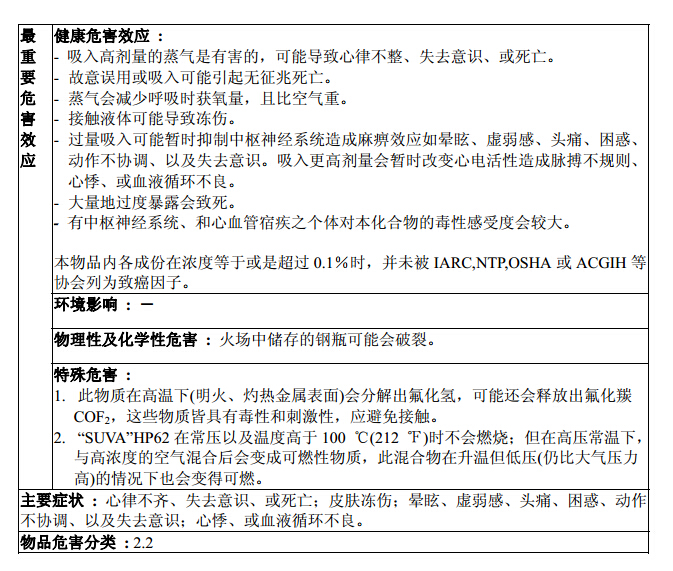 使用R404a制冷劑時材料安全數據表(參考)